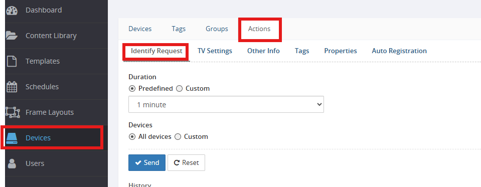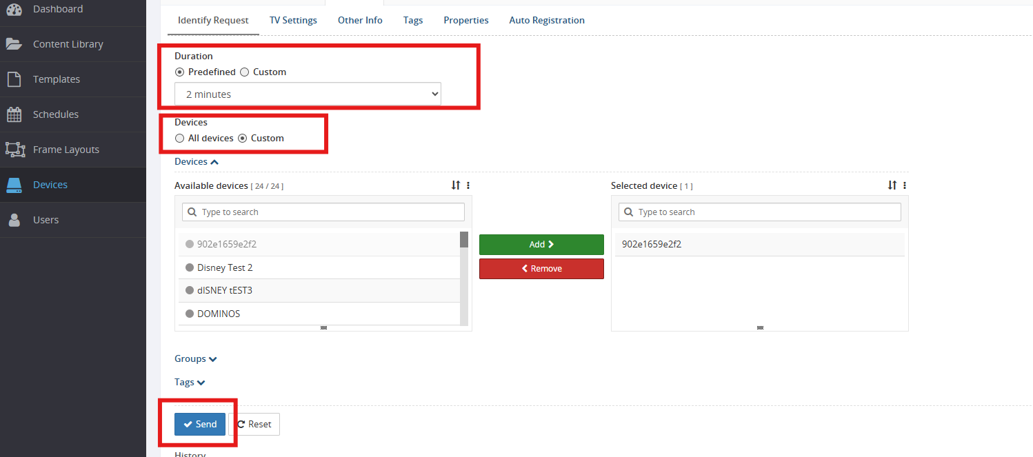 Once sent, the device details will appear on the TV screen if the device is online and connected to the hub.