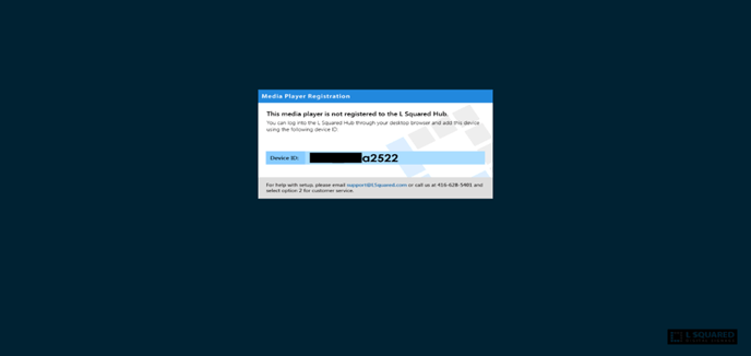Please call L Squared Support at 1-877-525-1995(Option-1) or send an email to support@lsquared.com to register the device.