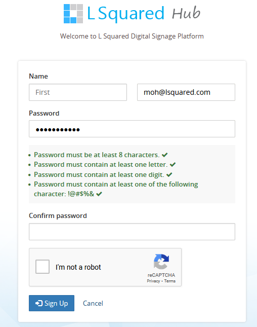You should have received an invitation to register to the L Squared Hub. If you have not received an invitation, please reach out to your server's administrator or to the support team at Support@Lsquared.com if this is a new server.